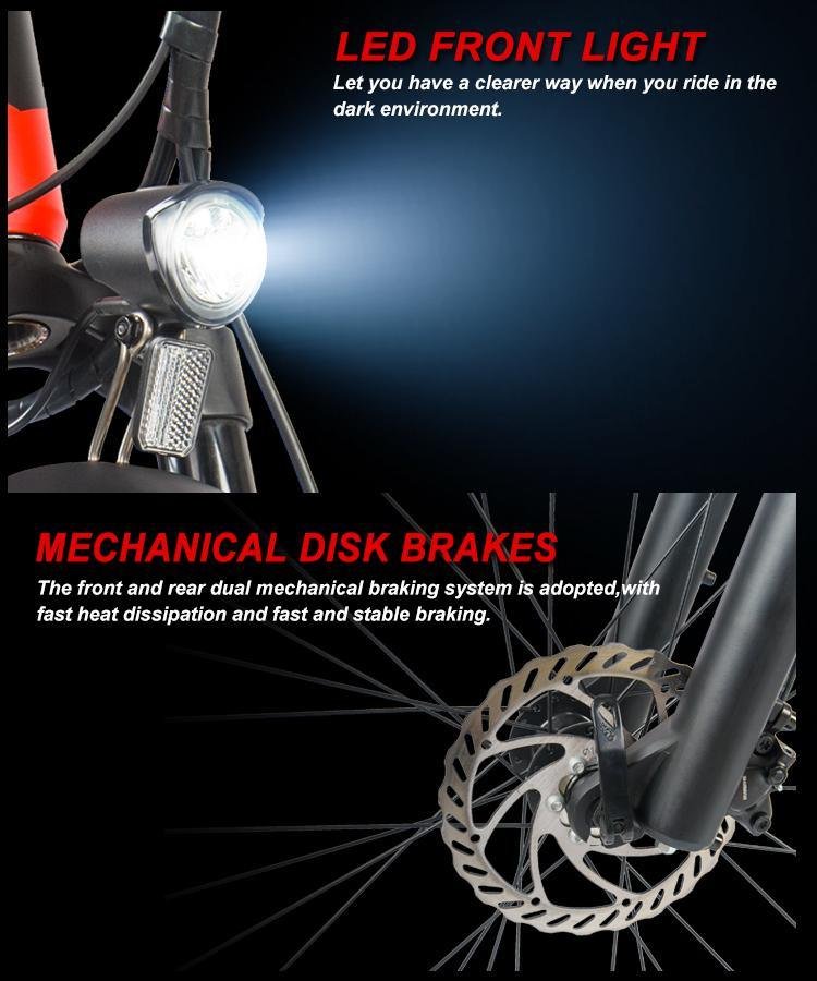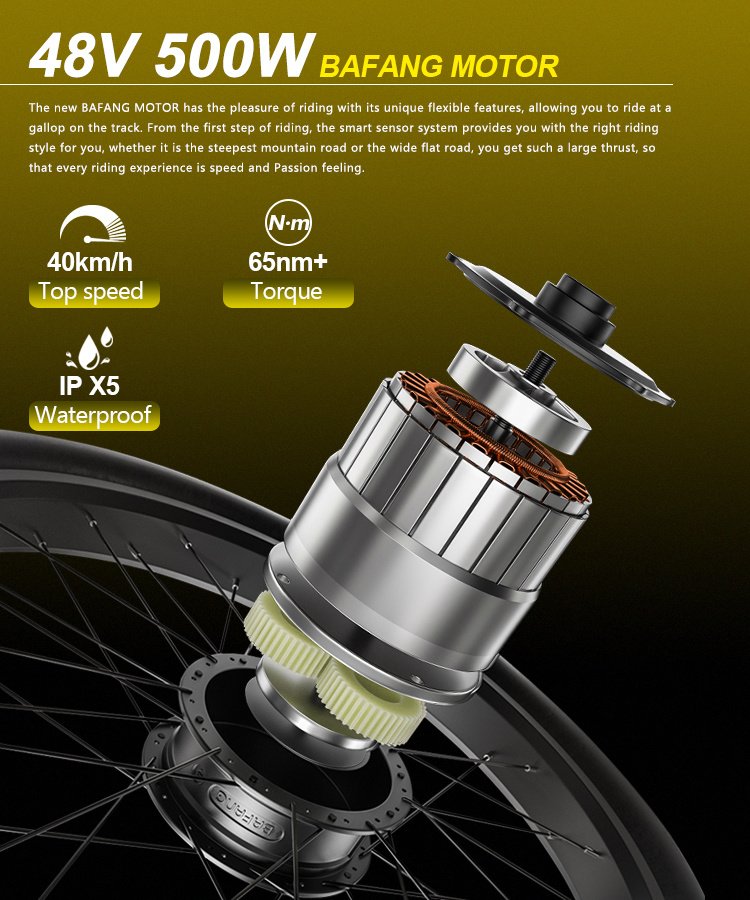 High power motor: The 500 watt octagonal rear mounted motor can provide powerful power support; making cycling easier and more convenient; especially when climbing hills or facing the wind.