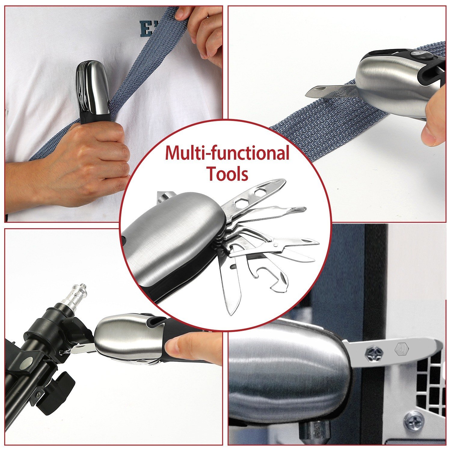 **HIGH BRIGHTNESS & ZOOMABLE FLASHLIGHTS*:Adopt premium LED beads,our multi-tool flashlight can concentrate on the strong light beam and protect you when you walking alone at night. The LED flashlight with a zoom option also features both high and low brightness settings and a strobe setting in case of emergency.(Note:Zoom adjustable via sliding the light head)